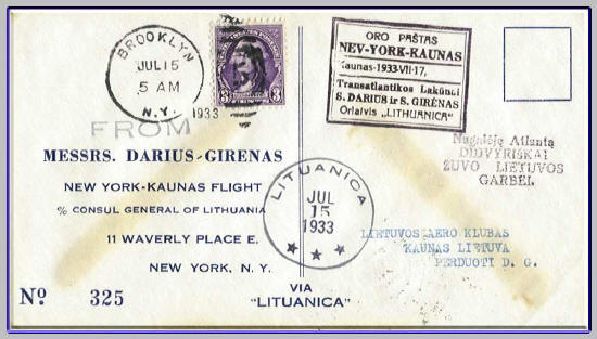 Ein Transatlantik-Flugbeleg von Darius & Girenas;