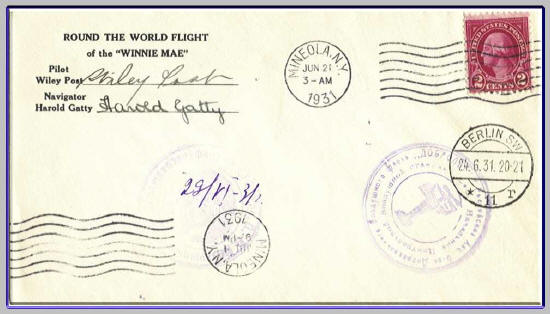 Ein Weltrundflugbeleg von Post & Gatty.