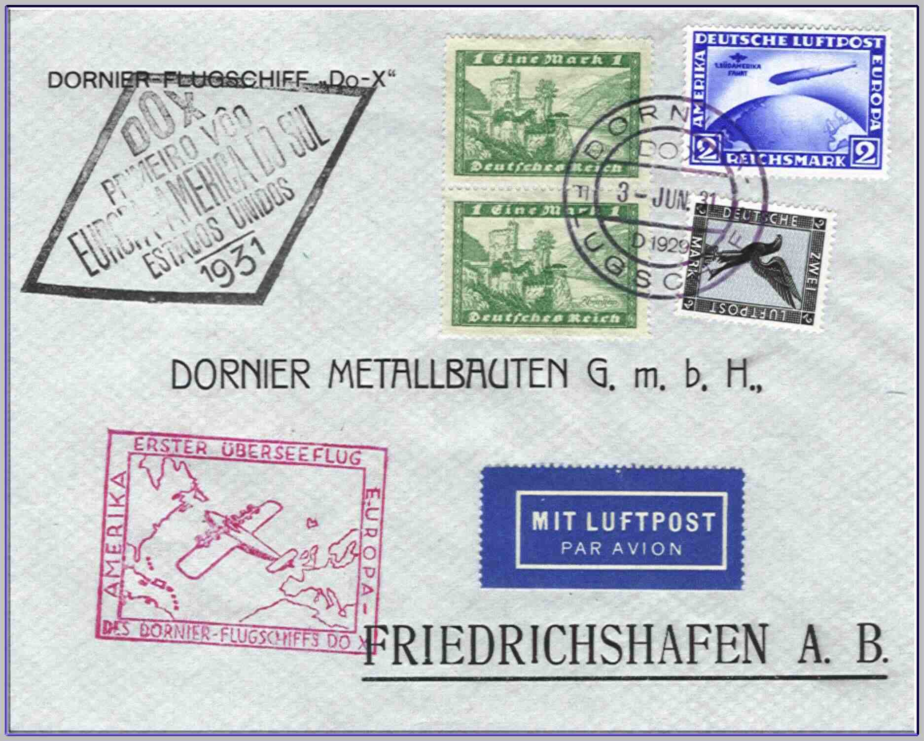 Der Navigationsoffizier Wilhelm Niemann hatte von der Dornier Metallbauten GmbH den Auftrag, besondere Etappen des DO-X-Überseefluges durch die bekannten Dornier-Eigenbelege zu dokumentieren und diese nach der Reise möglichst teuer zu verkaufen. Nach der jetzt aufgefundenen Bordpostabrechnung frankierte Niemann in Natal 24 Umschläge und drehte zur Entwertung der Briefmarken den Bordpoststempel auf den 3. Juni 1931 zurück! Ich nehme an, dass das echte Stempeldatum der 6. Juni war, da es von diesem Tag auch Bordpoststempelentwertungen auf wenigen Mannschaftsbelegen - und danach erst wieder Bordpost vom 16. Juni 1931 - gibt. So fertigte Niemann also nachträglich Belege an - die das Datum des Tages vor der Überquerung des Südatlantiks trugen, als die DO-X noch in Porto Praia, auf den Kap Verden, lag. In Wirklichkeit war Niemann dort am 3. Juni arbeitsunfähig. Ein schwerer Malaria-Anfall hatte ihn an das Bett gefesselt. Allein durch eine massive Chininspritze fitt gemacht, konnte er den Südatlantikflug, am 4. und 5. Juni 1931, navigieren.