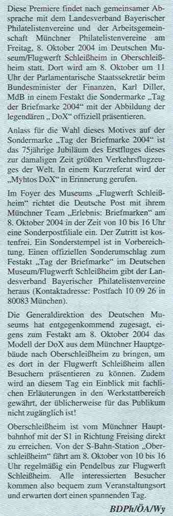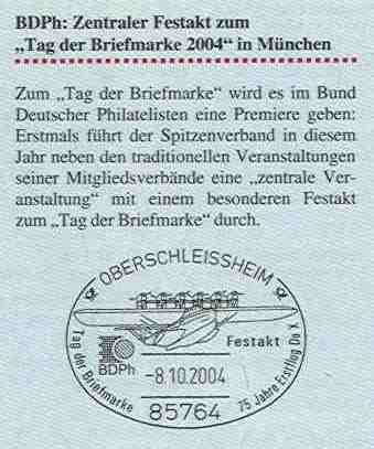 Die Sondermarke erschien am 7. Oktober und wurde am 8. Oktober in der Flugwerft Schleißheim, bei