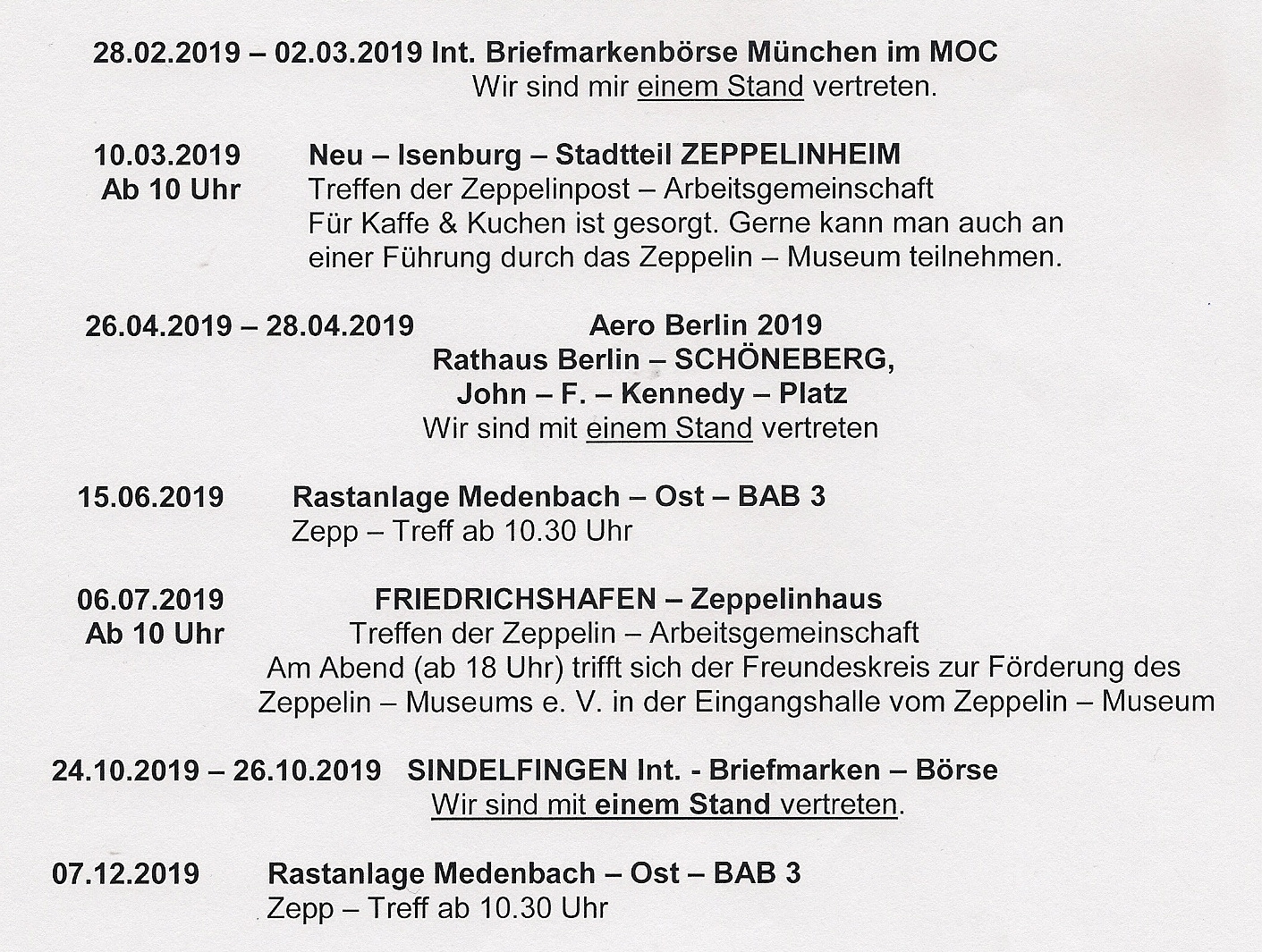 119 Jahre Zeppelin-Luftschiffe * 46 Jahre Arbeitsgemeinschaft wichtige Termine für Zeppelinpostsammler