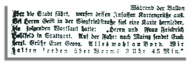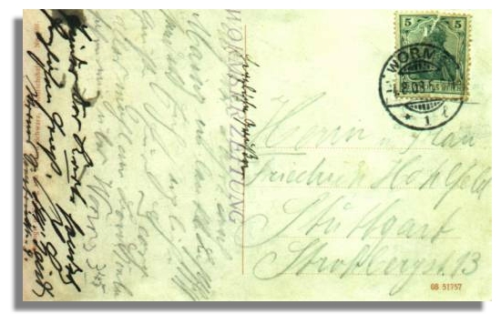 unbedeutend. Die Karte wird in einer absoluten Primärquelle, dem Abendblatt der Wormser Zeitung vom 4. August 1908 erwähnt - und im Morgenblatt vom 5. August 1908 im Wortsinn zitiert!